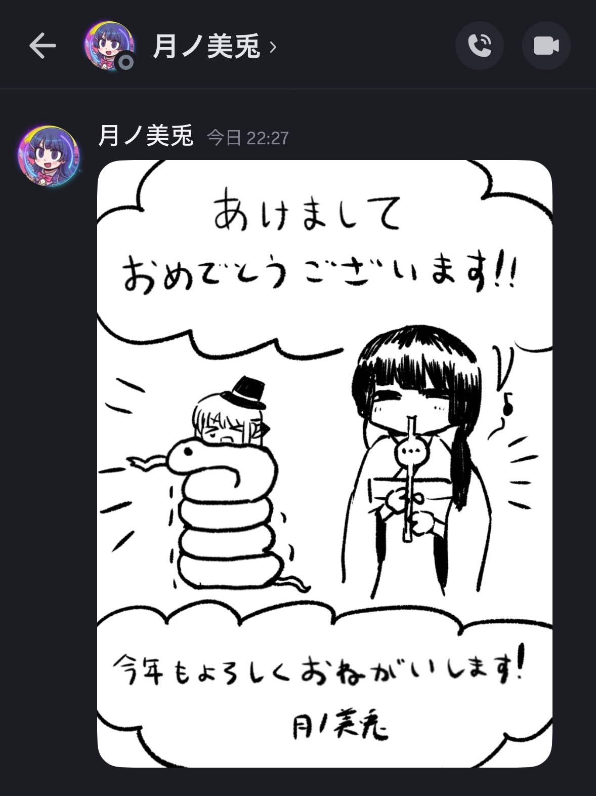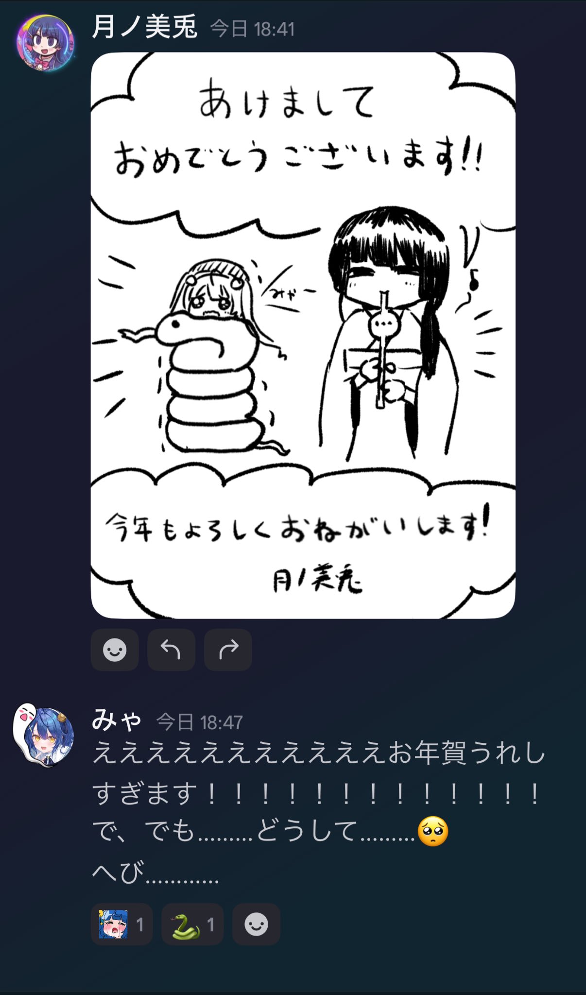 みと委員長さんから年賀状をもらいました~!🐍🐍かわいい~!うれしい~ありがとうございます!
