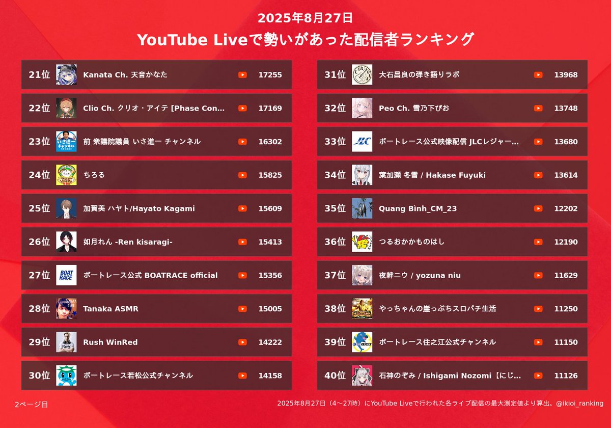 配信者勢いランキング @ikioi_ranking (2025/08/28 09:10:15)