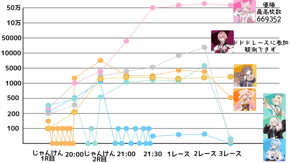 縦軸のわたメダルの単位がちょっと見づらいかもだけど雰囲気がわかれば!