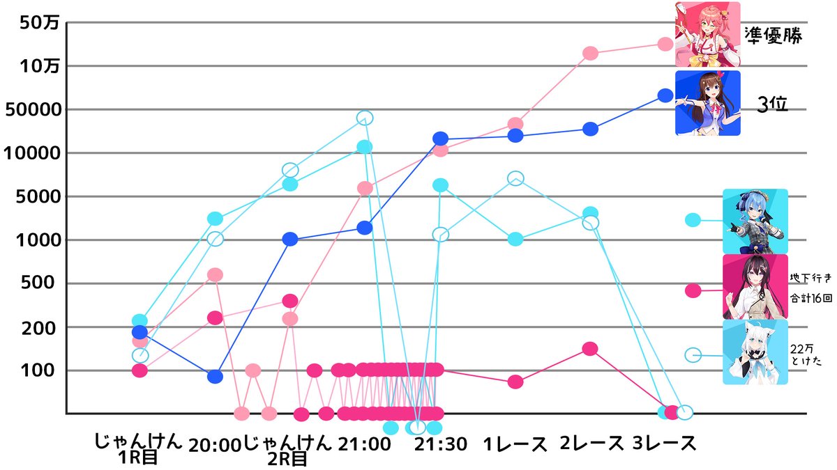 あと持ちメダル0で地下に行ったときだけ折れ線グラフに反映してみました〜