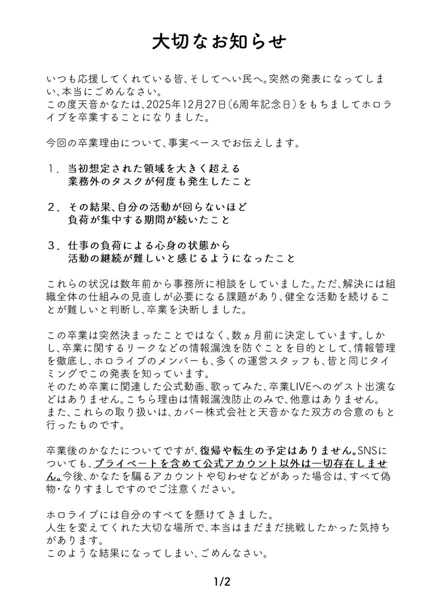 ぜひ読んでいただけたら嬉しいです。 pic.twitter.com/lvST9dWCrR— 天音かなた💫ホロライブ (@amanekanatach) December 2, 2025