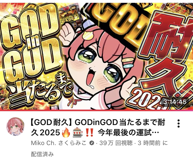 みこのさっきのgod 同接60000 3時間配信 39万再生