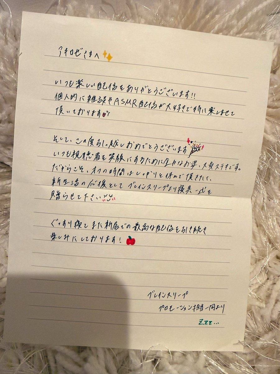 ちょうど仕事も1番忙しい時期が重なって心も体もヘトヘトだったんだけど、ブレインスリープさんから睡眠で応援をいただいて乗り越えさせていただいてます🥰✨️手書きのお手紙までいただいてブレインスリーブさんパーフェクトウォームとWの温かさ包まれてます🙌… pic.twitter.com/tXwSkumQzf