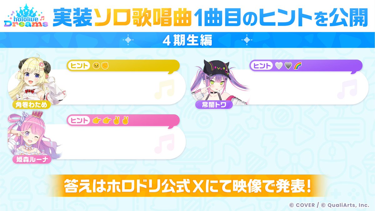 ◤ ソロ歌唱曲 実装曲ヒント 🎶◢